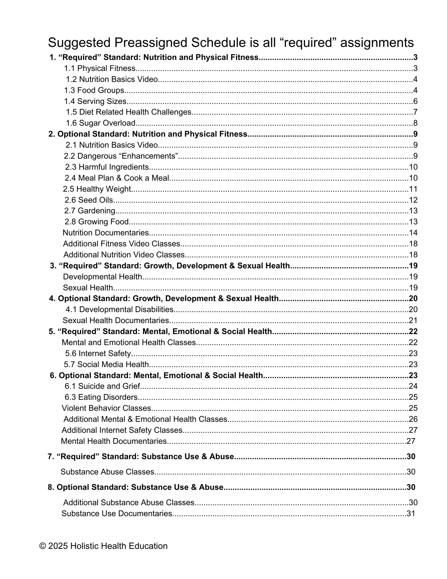 This schedule is for 4 days a week, completing the class in 15 weeks. It includes all of the assignments deemed "required". It can still be customized and also leaves room for about 10 additional assignments which can be chosen from the master list to complete the semester.